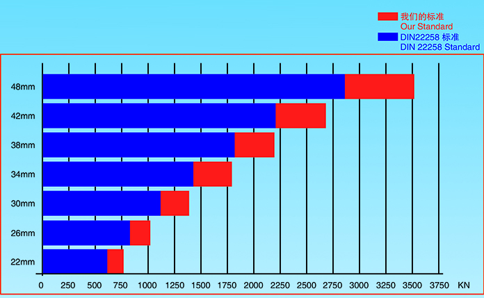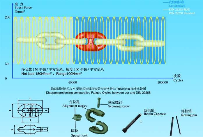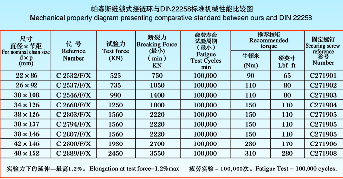帕森斯鏈鎖式接鏈環(huán)與DIN22258標(biāo)準(zhǔn)機(jī)械性能比較圖