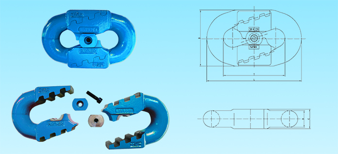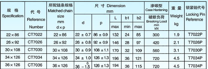 The high stregth, high abrasion resistant TF connector is manufactured by the high alloy steel include the Cr,Ni, Mo element. Heat treatment finished in the air controlled furnaces enabled the products has the feature of high abrasion resistant (Hardness over HV800, Carburization Depth 0.1d, Effective Hardened Layer0.05d), high stregth (Breaking Force over 400N/mm2), easy installment( Both horizontally and vertically used ) and used widely in the slag-dredger conveying system of the generating station. We also offer universal chain connector.The size of the high stregth, high abrasion resistant arc-tooth connector meet the requirements of DIN22258 Part and MT/T99. Please be aware of the fitting direction when assembling for vertical use, keep the top arrow direction same with the transmission direction.